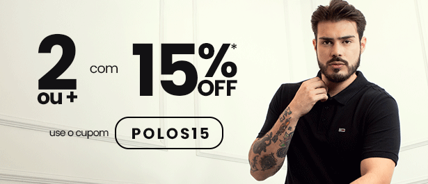 Polo Guess Masculina Piquet Silk Grey Frisos Preta Polo masculina Guess na cor preta. Tecido em Piquet. Gola e mangas com acabamento canelado. Símbolo da marca estampado do lado esquerdo do peito. Peitilho com dois botões preto para fechamento, com o nome da marca...- R$ 227,99 no pix