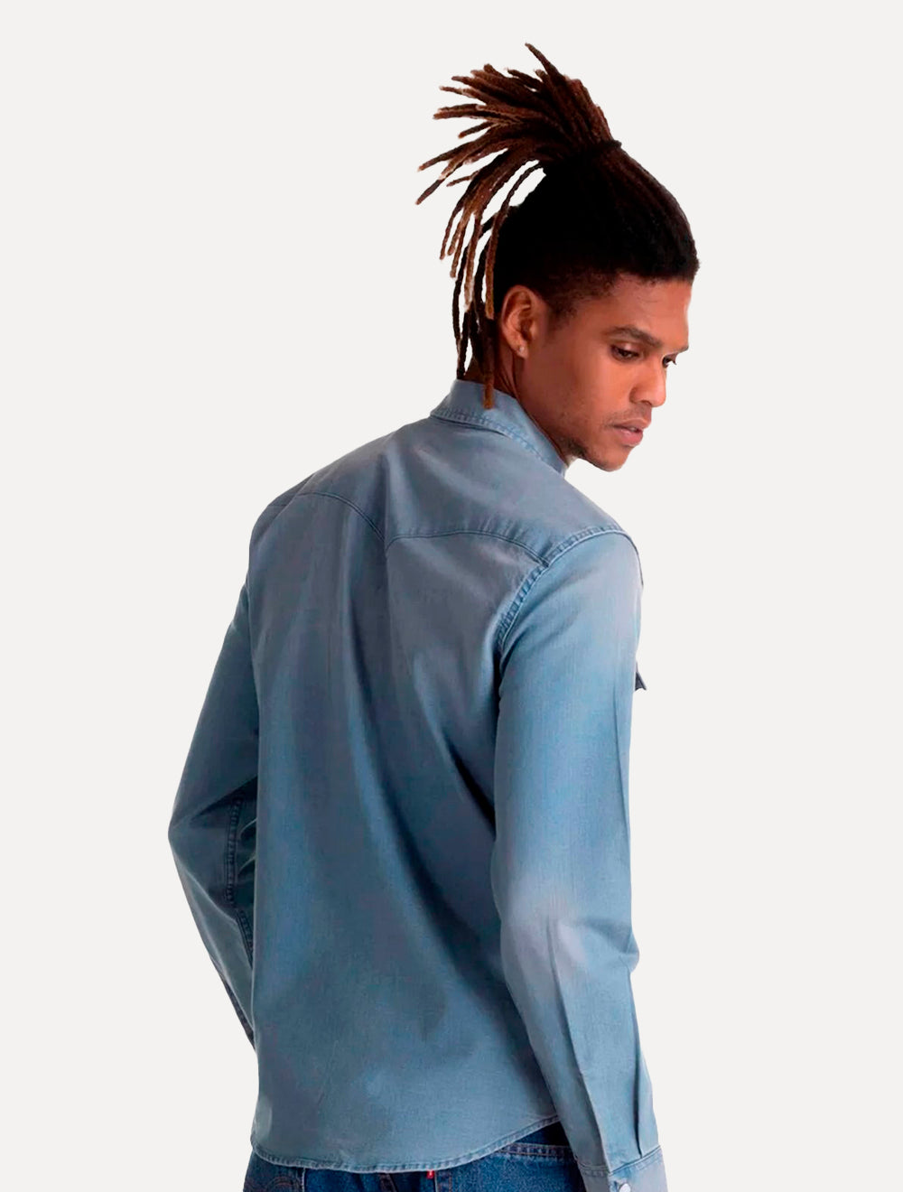 Camisa jeans manga longa masculina Levi's na cor azul claro.