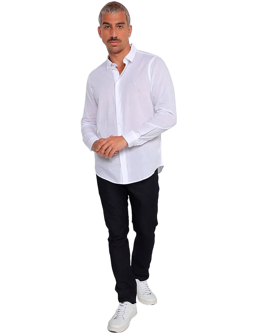 Símbolo da marca bordado, na cor da peça, no lado esquerdo do peito.