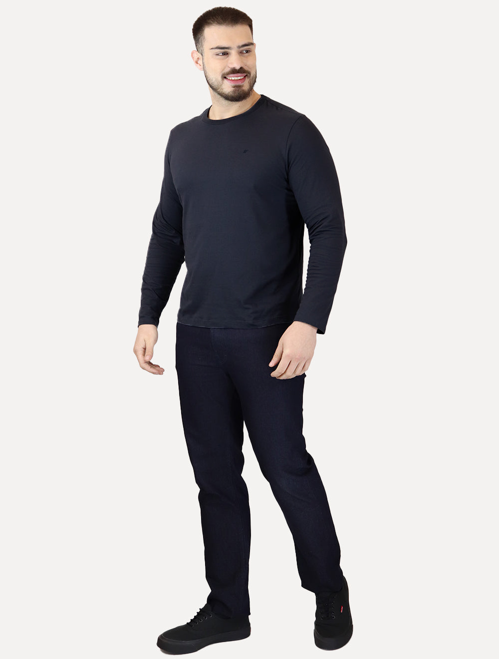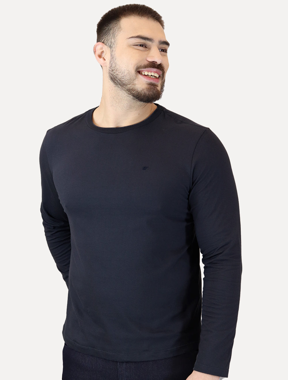 Camiseta Ellus masculina manga longa na cor azul marinho.