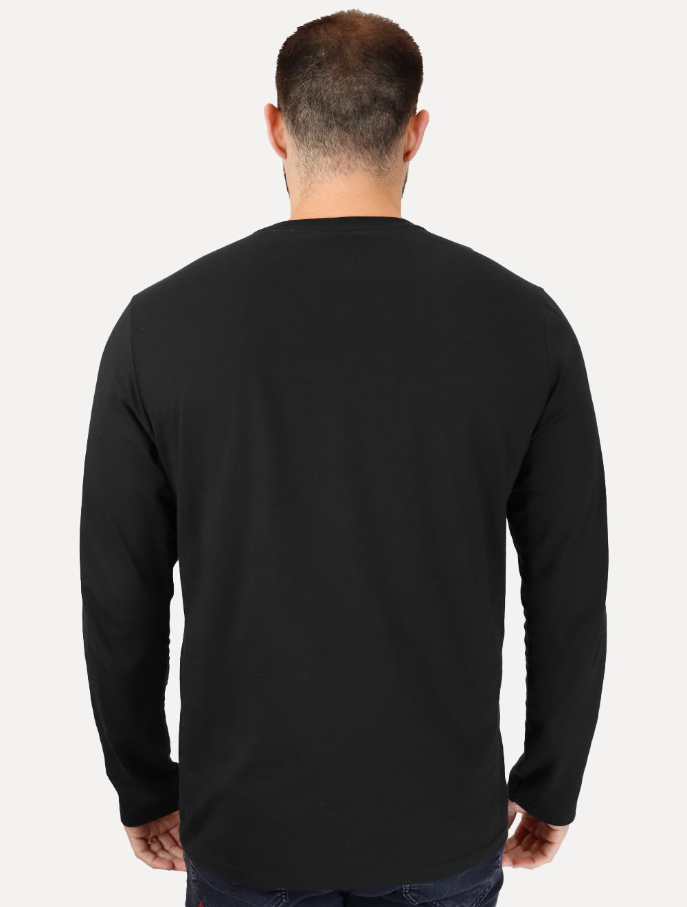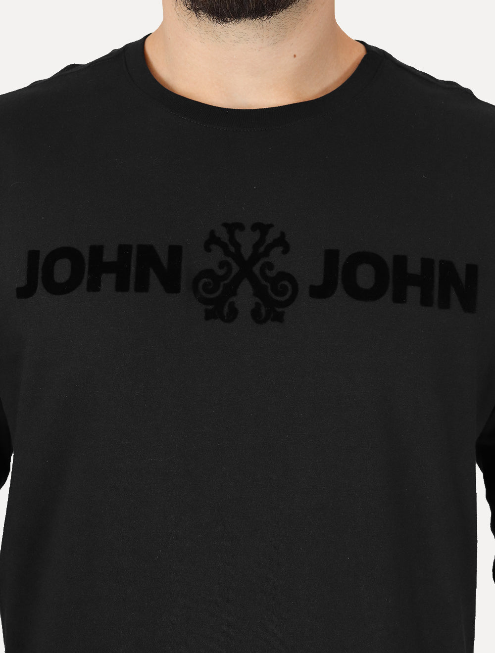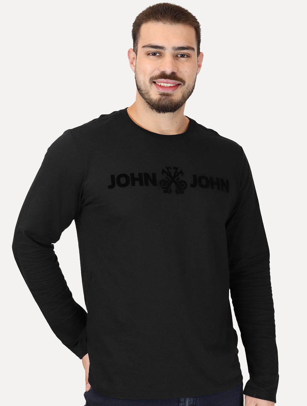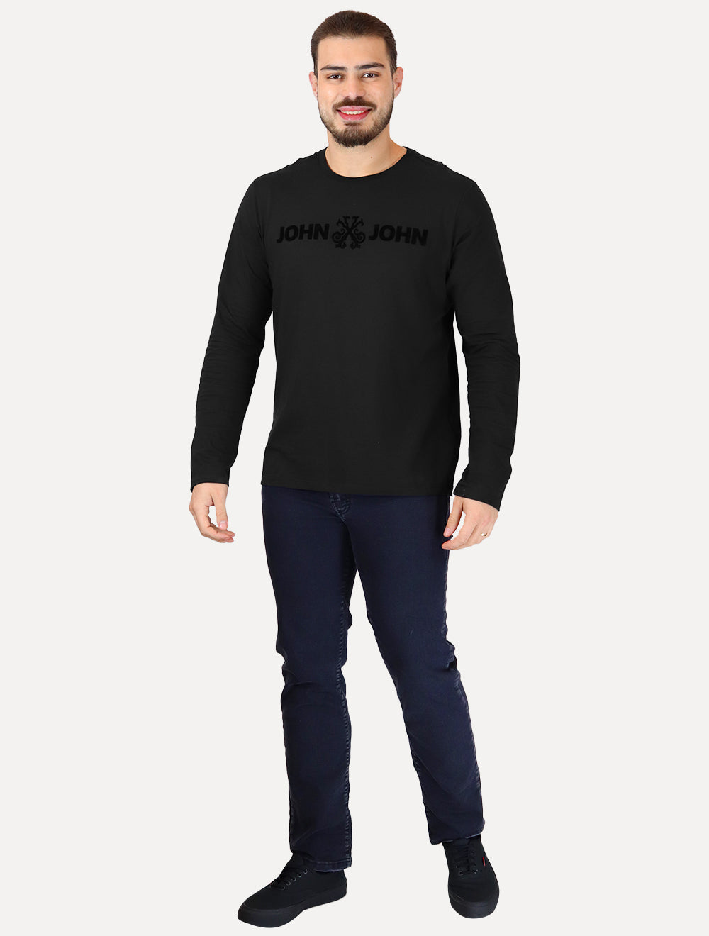 Confeccionada em malha, possui modelagem reta e mangas longas.