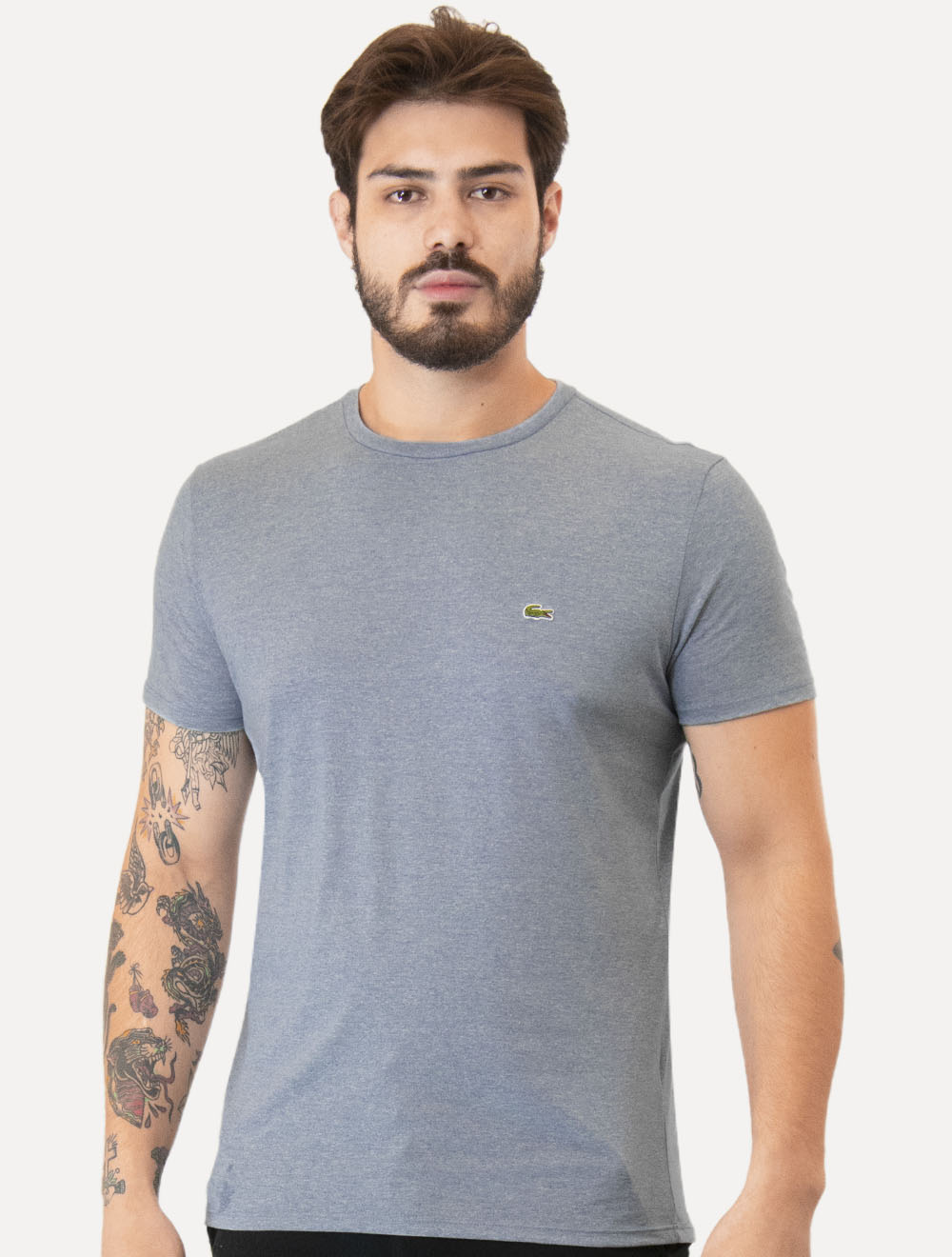 Símbolo do crocodilo bordado na altura do peito.