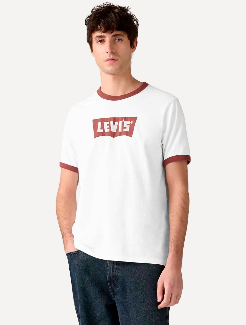 Camiseta estampada masculina Levi's na cor vermelho e branco.