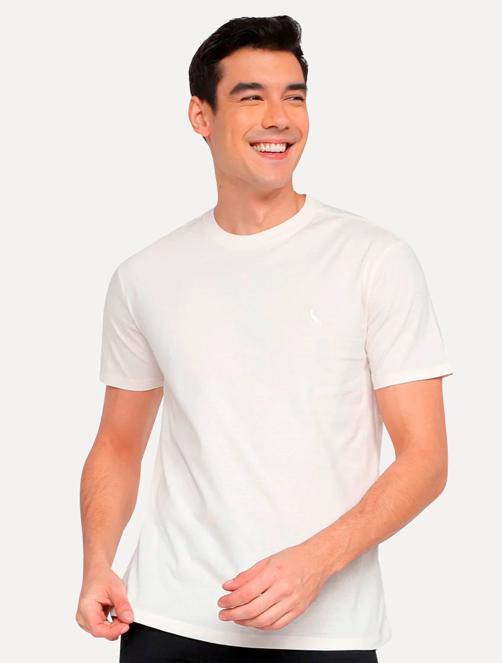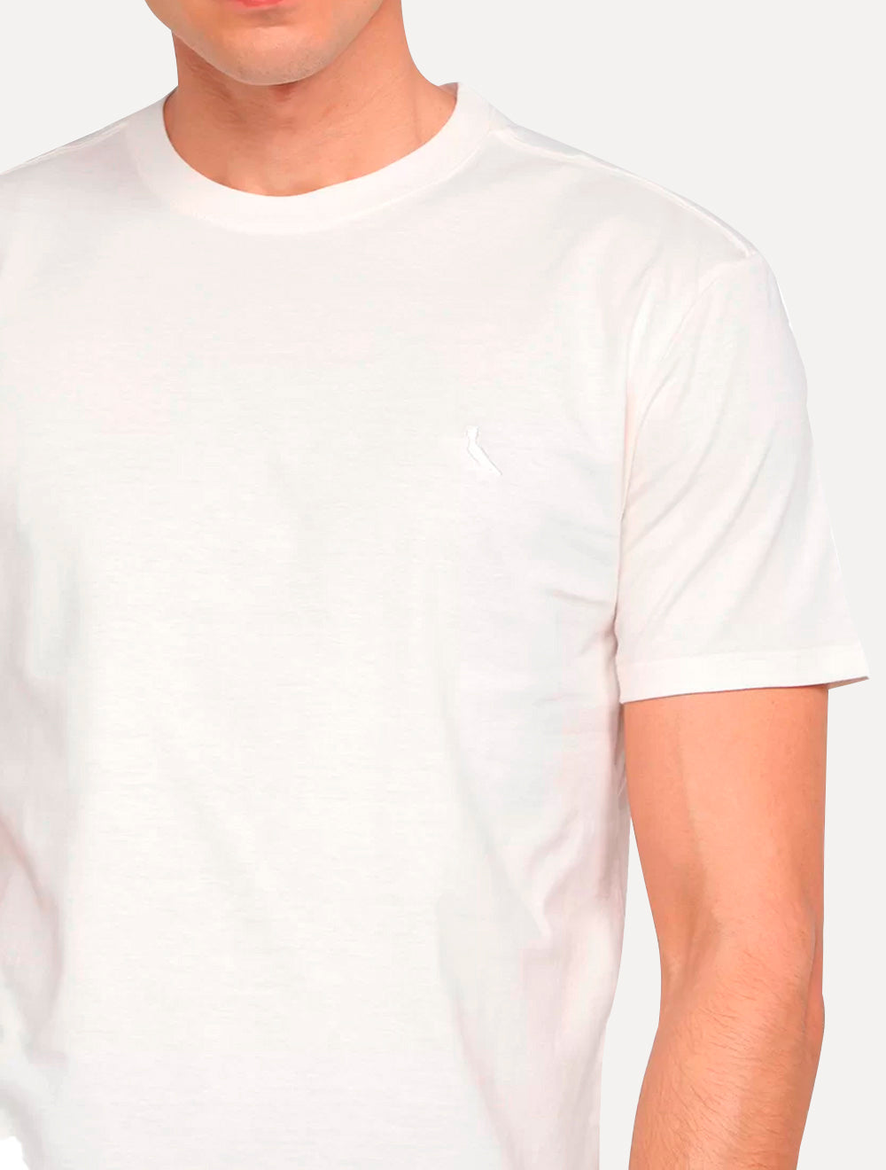 Apresenta o pica-pau, símbolo da marca, bordado, na cor off-white, no lado esquerdo do peito.