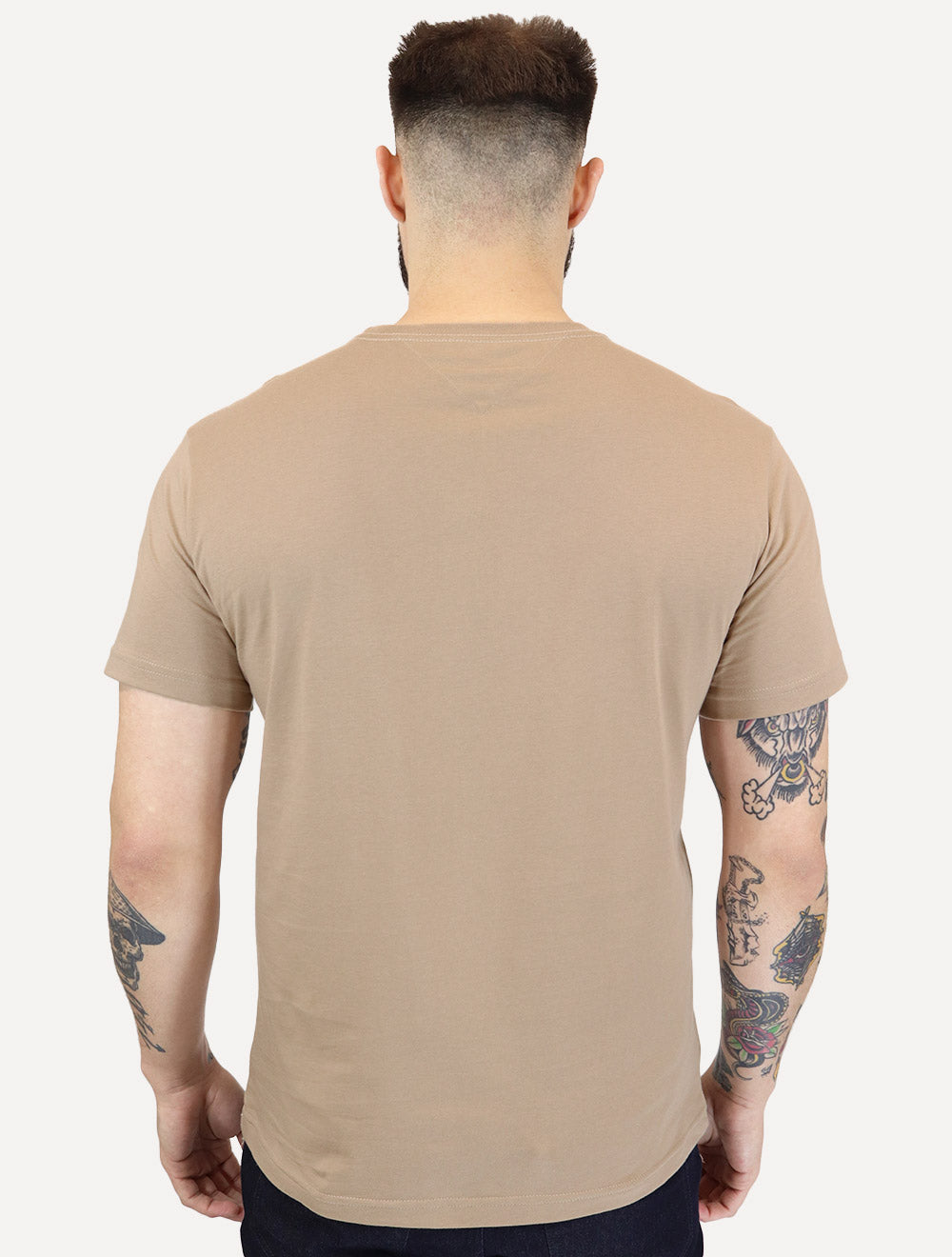Camiseta Tommy Hilfiger manga curta na cor marrom claro.