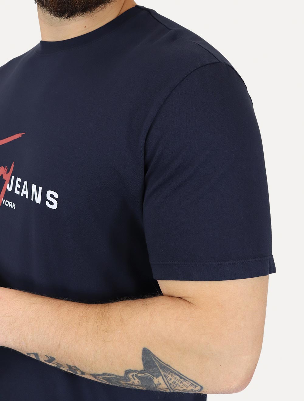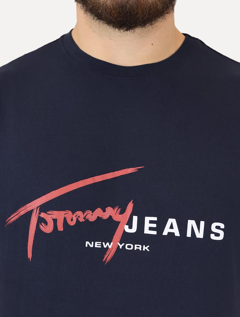 Assinatura Tommy Jeans no centro do peito,na cor vermelha e branca