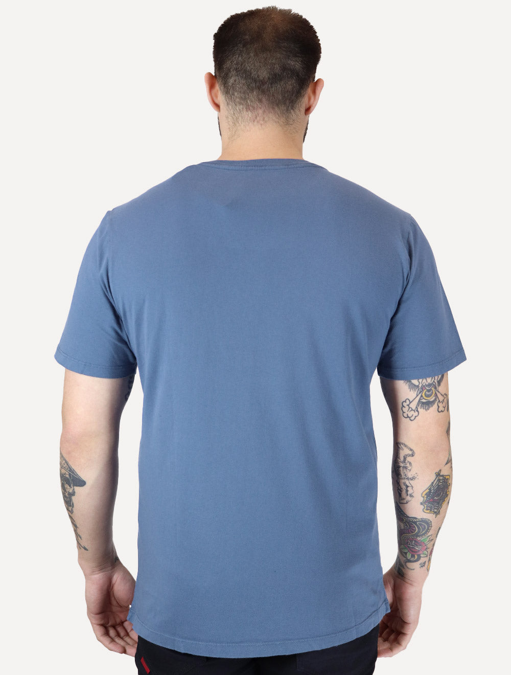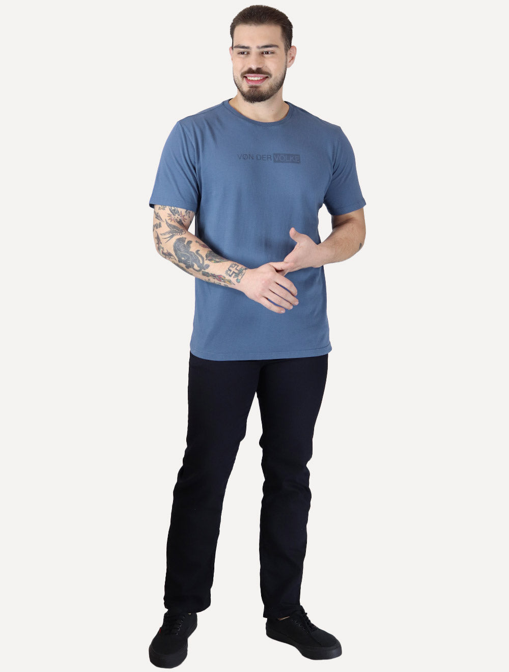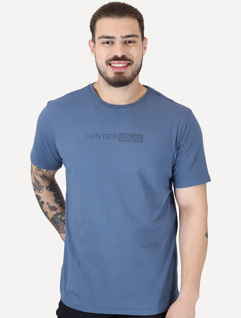Camiseta masculina manga curta Von der Volke na cor azul escuro.