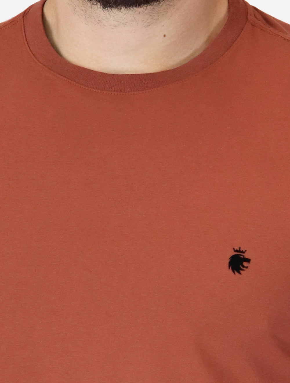 Camiseta masculina manga curta Von der Volke na cor terracota.