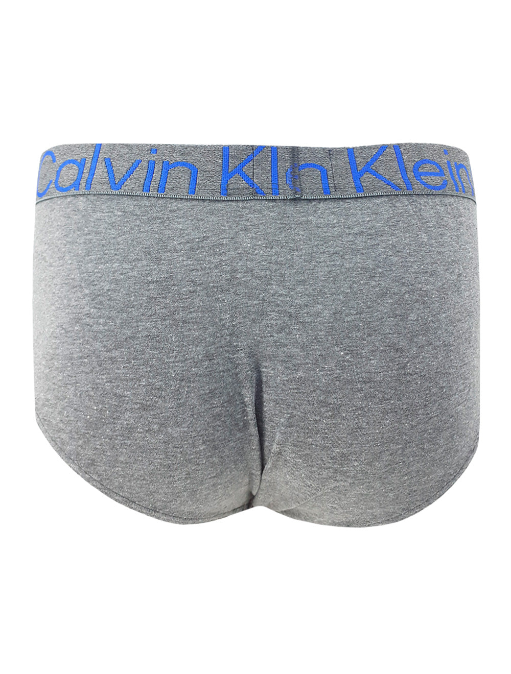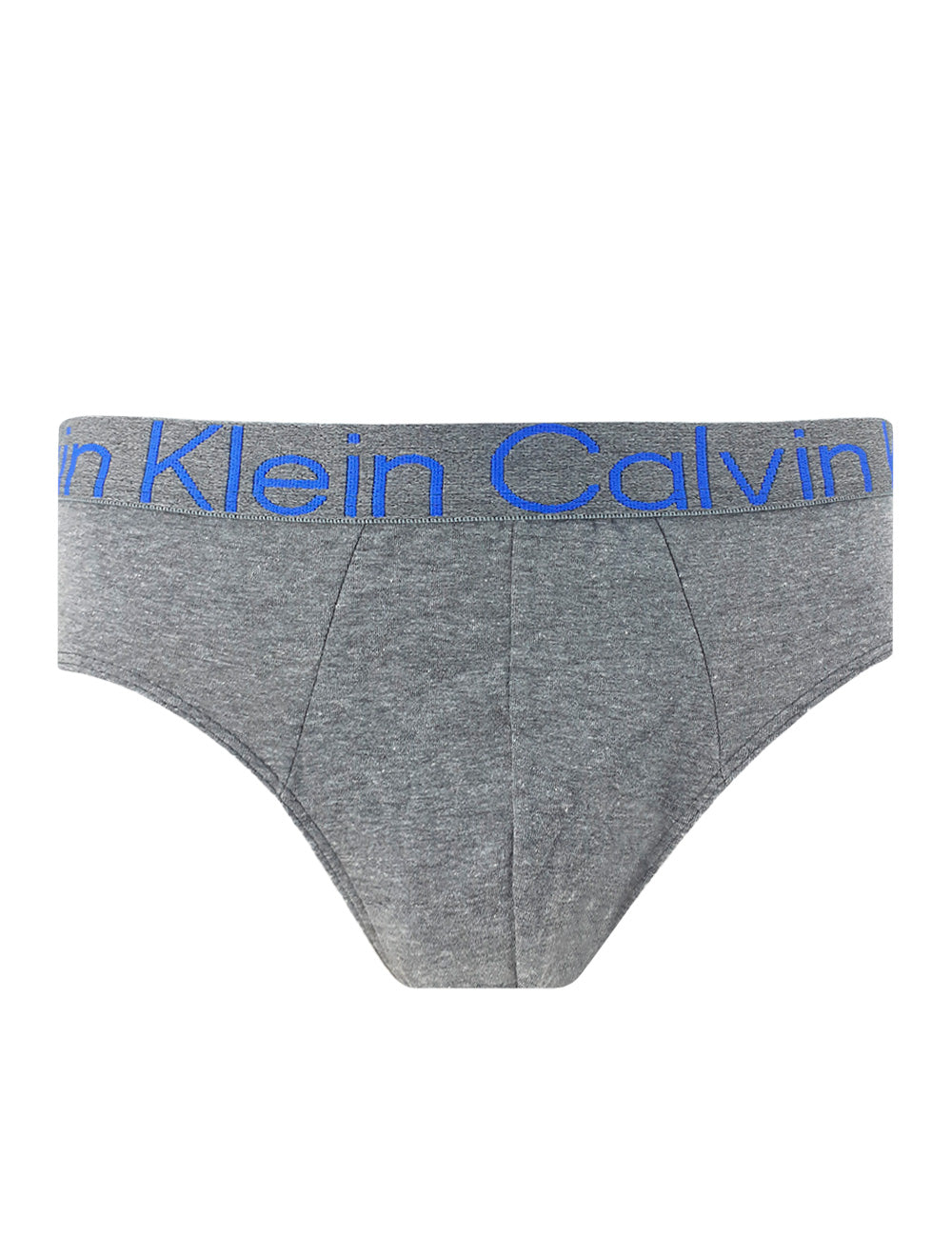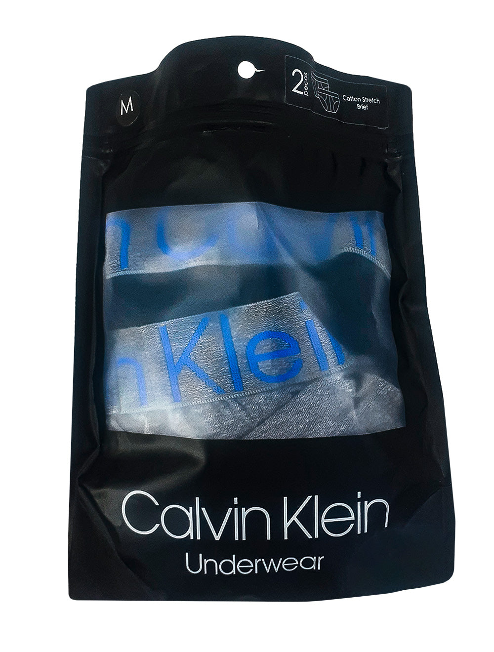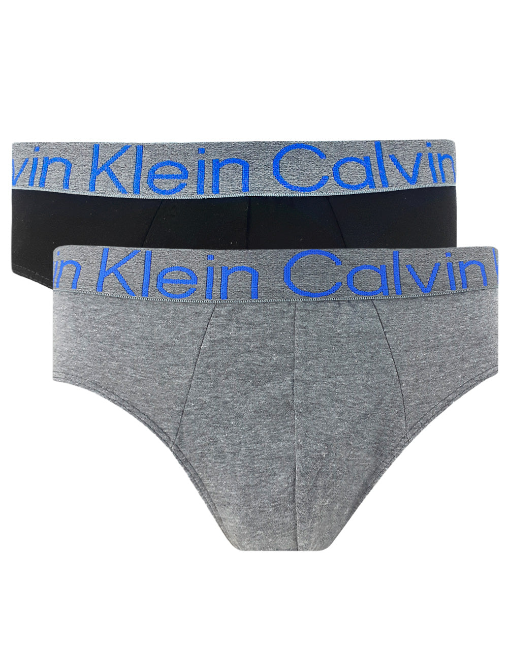 Pack com duas cuecas Calvin Klein, uma na cor cinza e outra na cor preto.