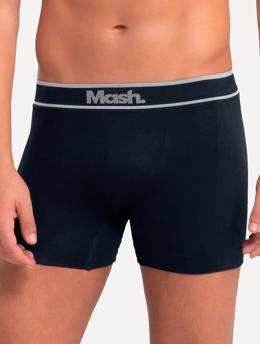 Kit contendo duas cuecas de microfibra sem costura Mash na cor azul marinho.