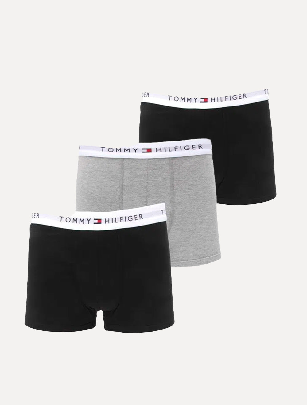 O Kit Cueca Tommy Hilfiger Cotton Stretch Trunk Preta Cinza Mescla Pack 3UN é perfeito para quem busca qualidade e conforto em peças íntimas.