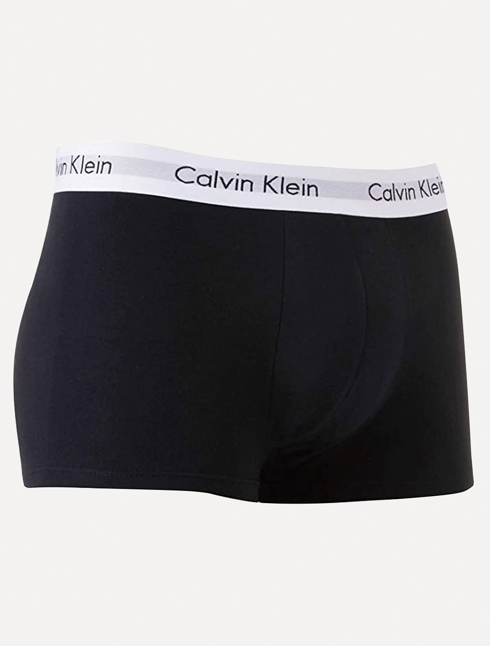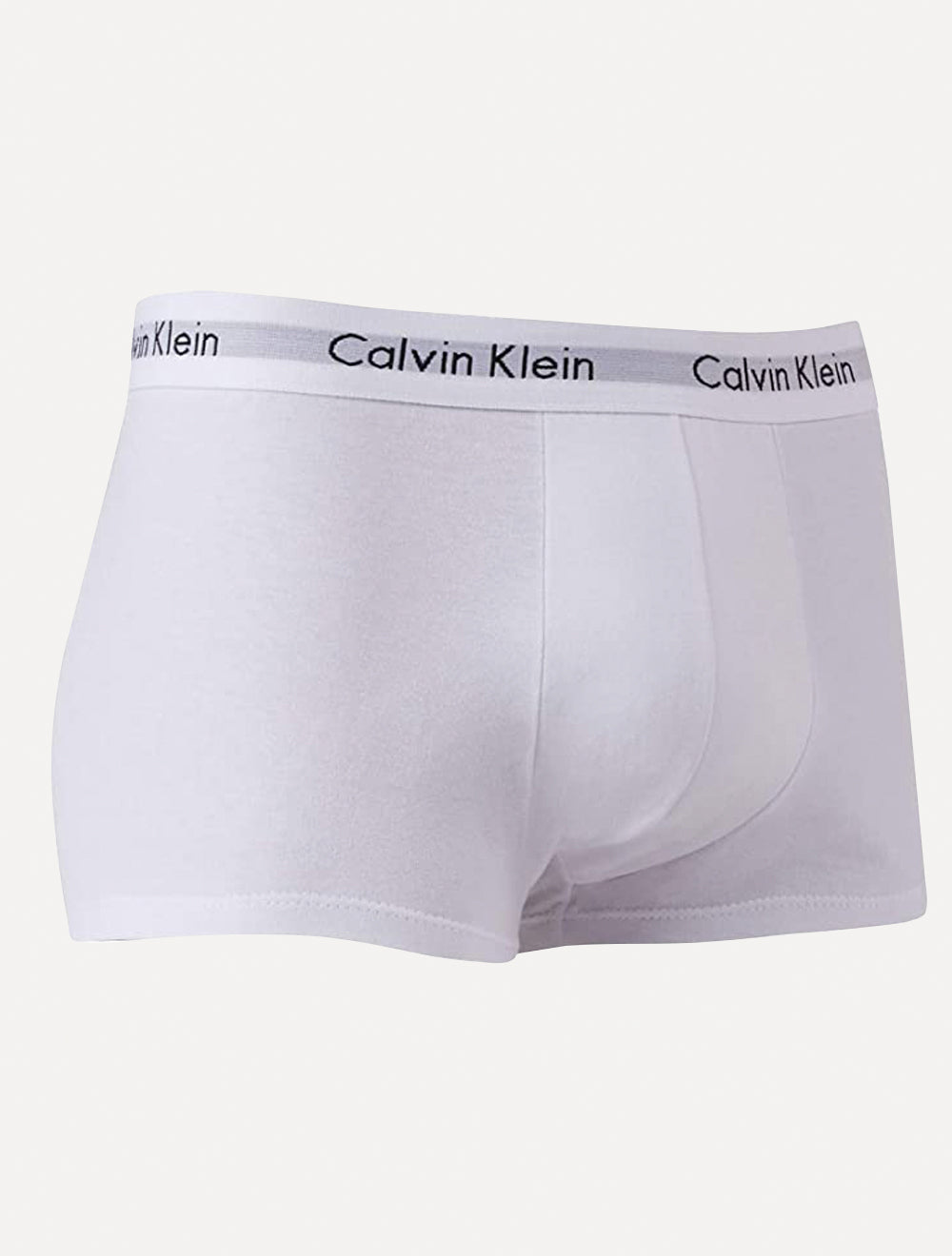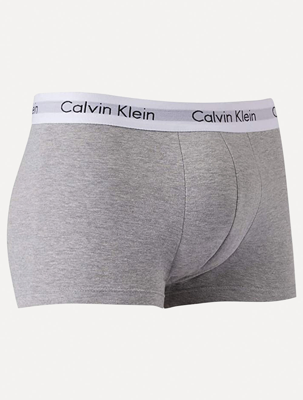 Kit contendo três cuecas Calvin Klein nas cores branca, preta e cinza mescla.