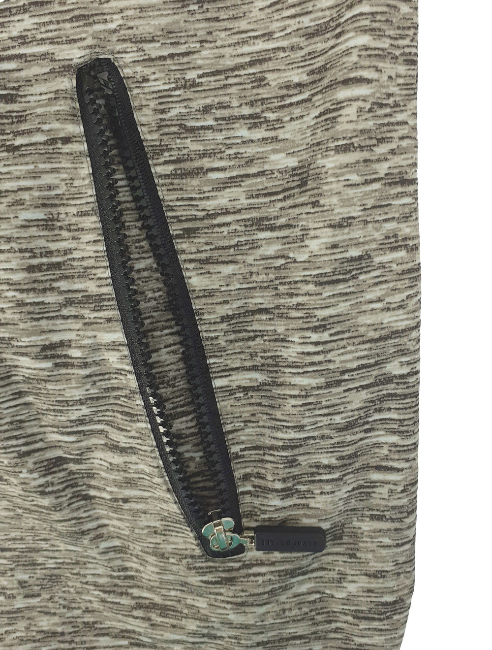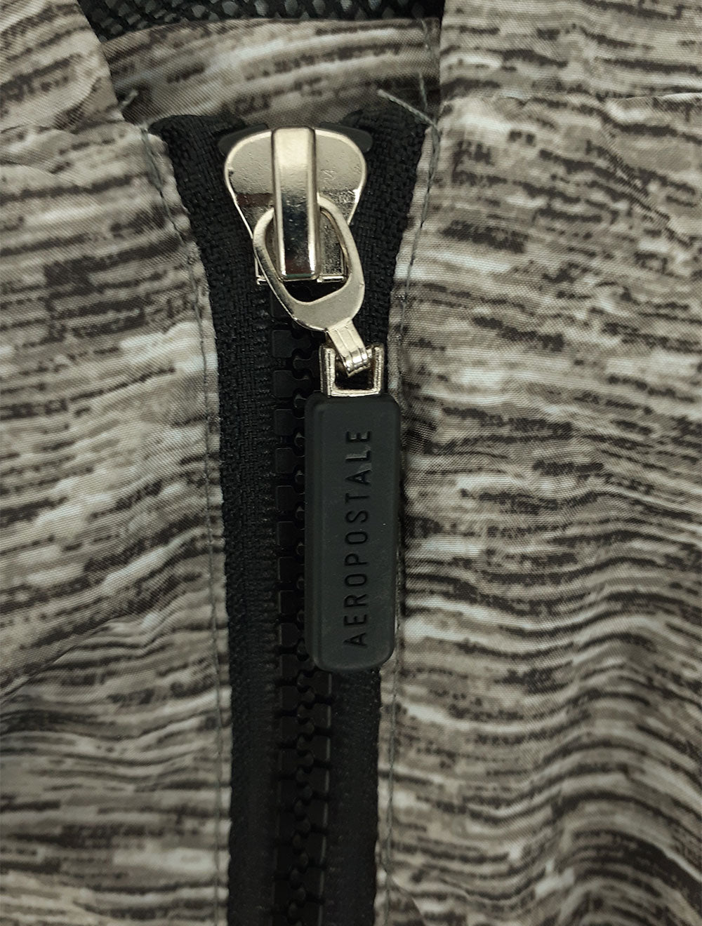 Punhos e barra elásticos e fechamento frontal por zíper.