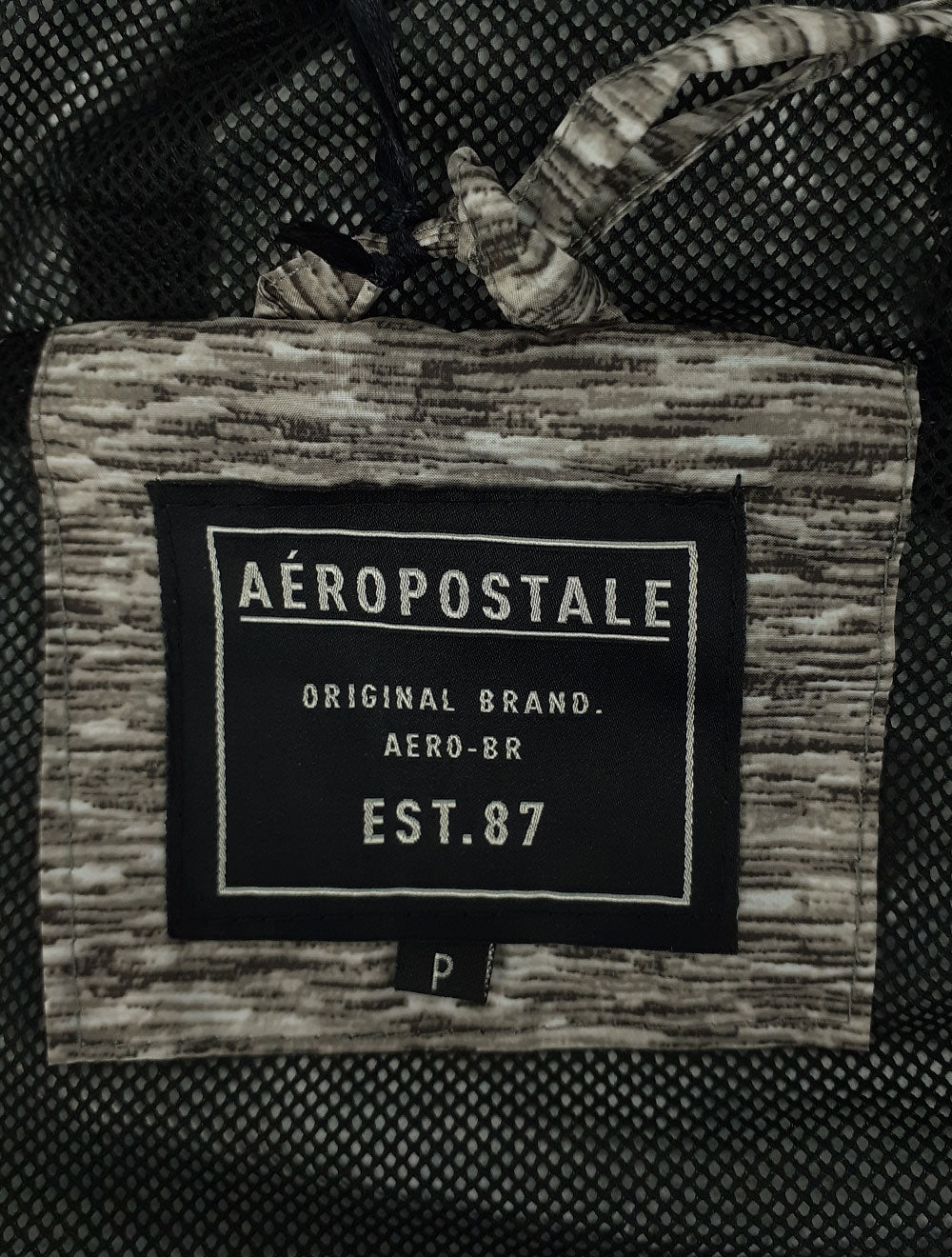 Jaqueta corta-vento Aeropostale com capuz na cor cinza médio mesclado.