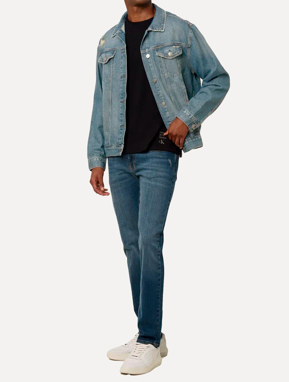 Jaqueta jeans Calvin Klein Jeans na cor azul escuro.