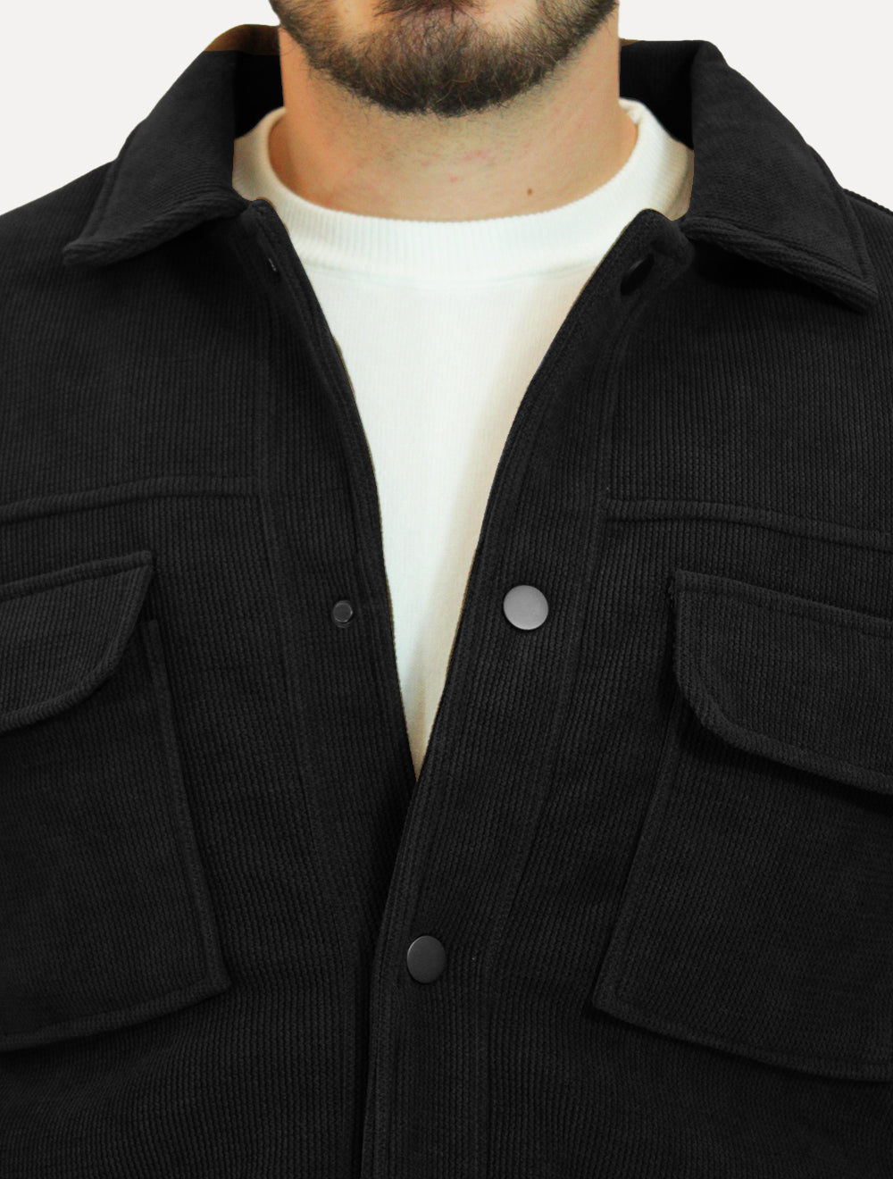 Confeccionada com uma luxuosa textura cotelê que remete ao toque aveludado, esta jaqueta eleva instantaneamente qualquer composição, conferindo um ar de refinamento.