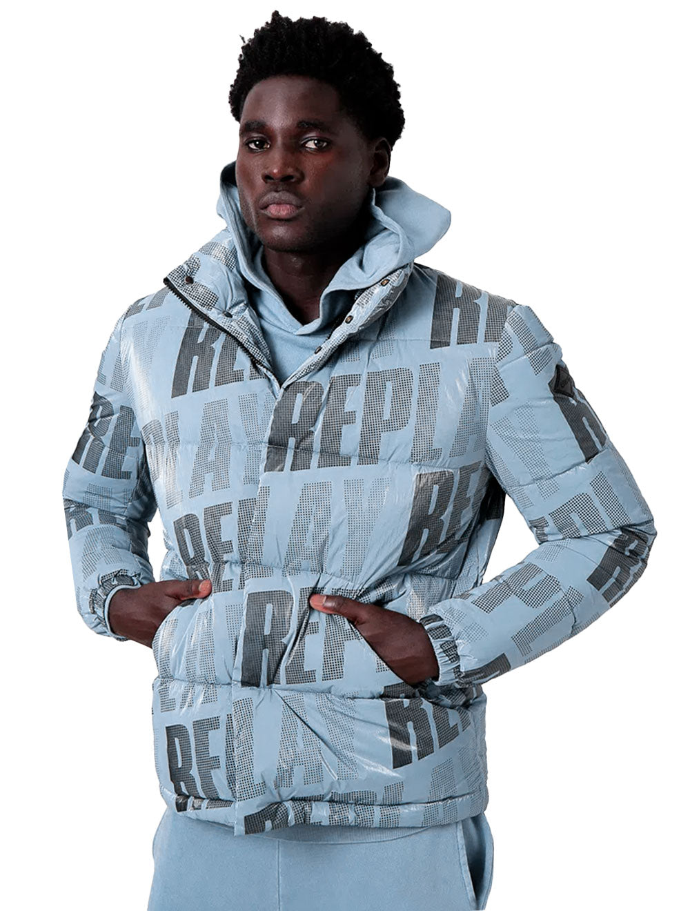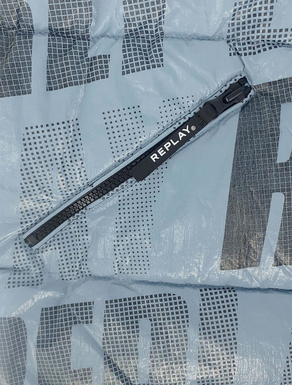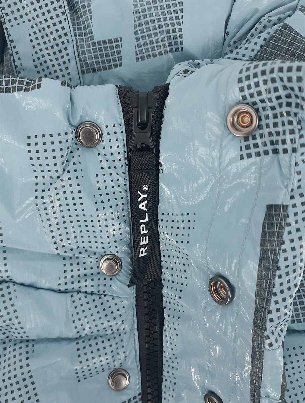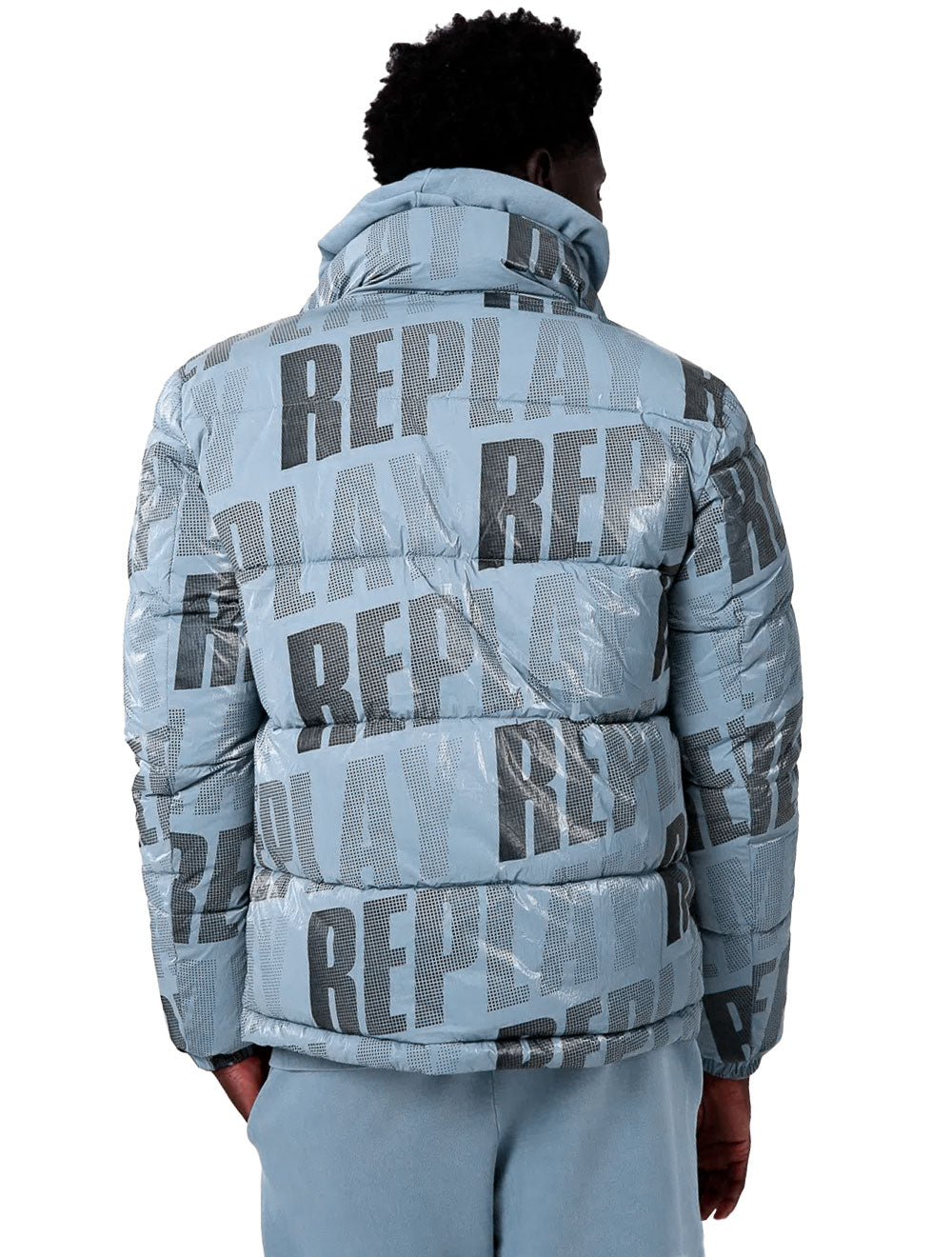 Jaqueta Replay em nylon na cor azul claro.