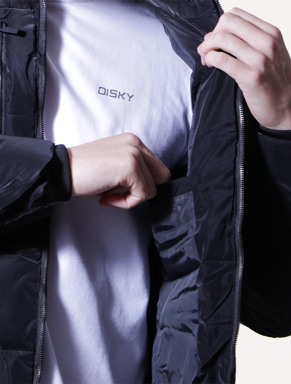 Fechamento em ziper.