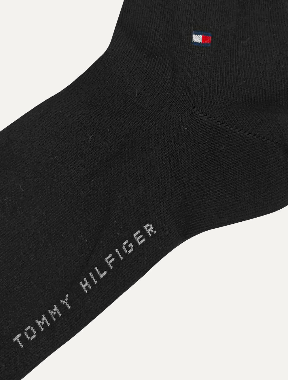 Símbolo da marca bordado na altura do calcanhar, nas cores vermelho, branco e azul marinho.