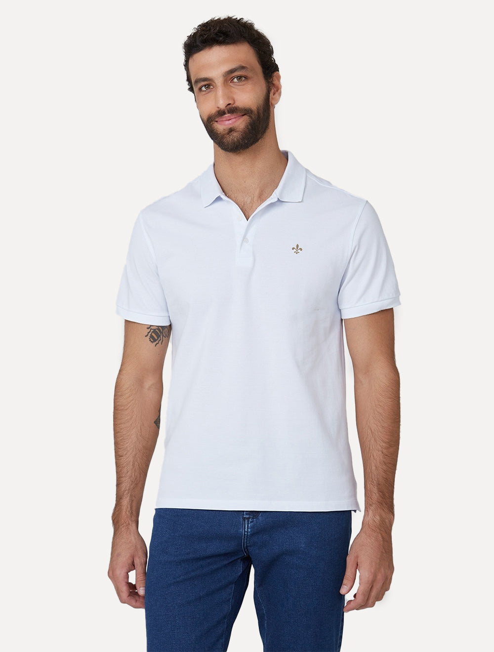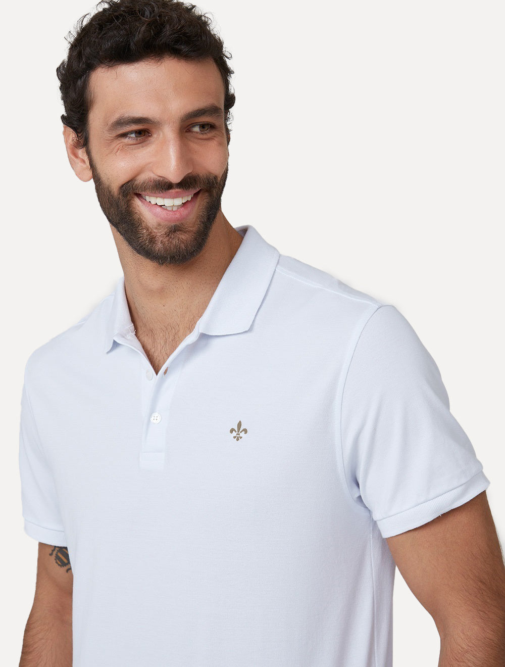 Aplicação bordada do logo no lado esquerdo do peito, na cor marrom.