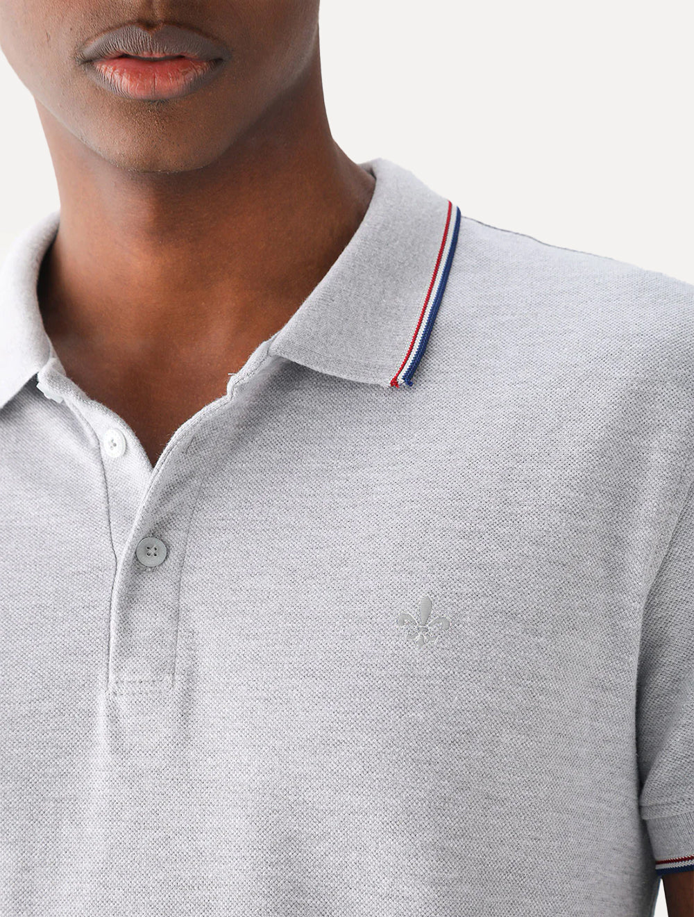 Polo masculina Dudalina na cor cinza mescla.