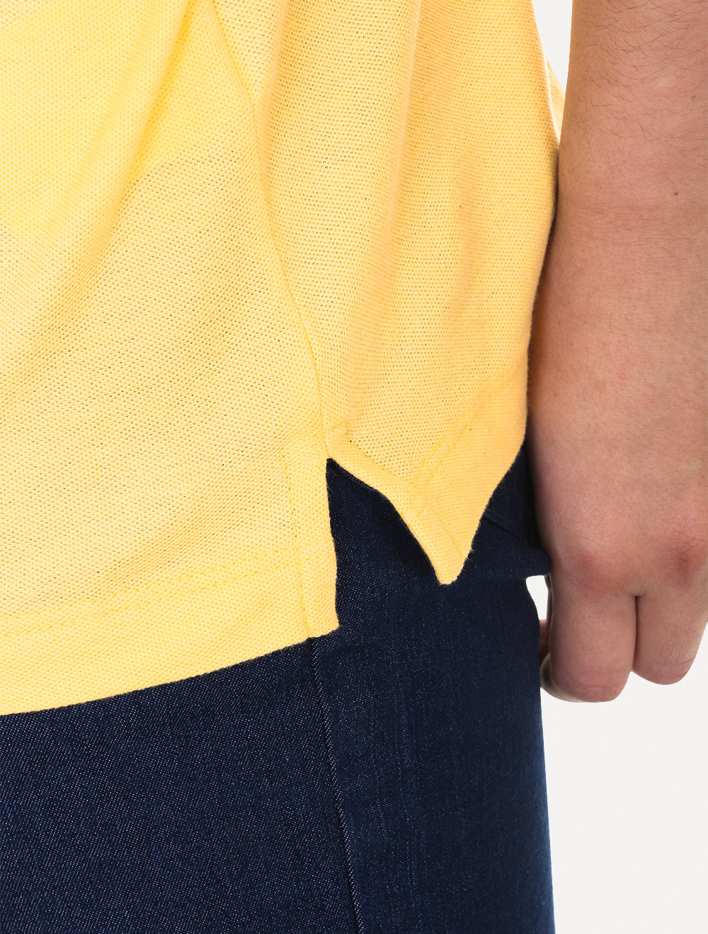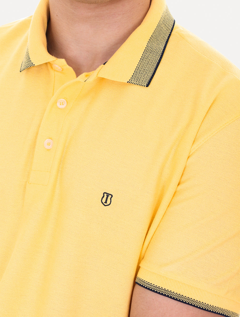 Polo básica Individual masculina em piquet na cor amarela.
