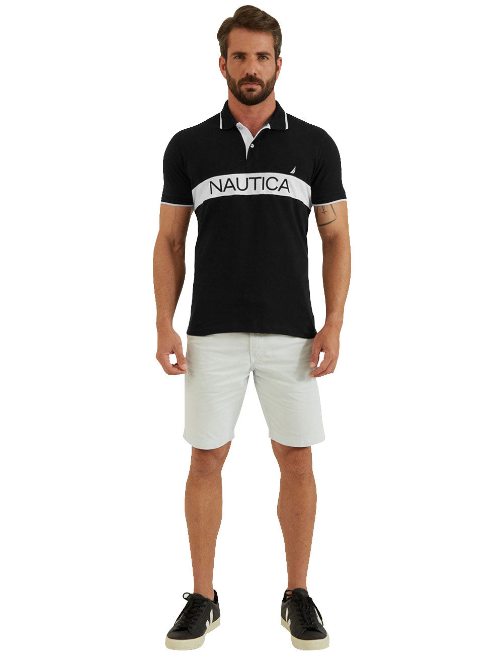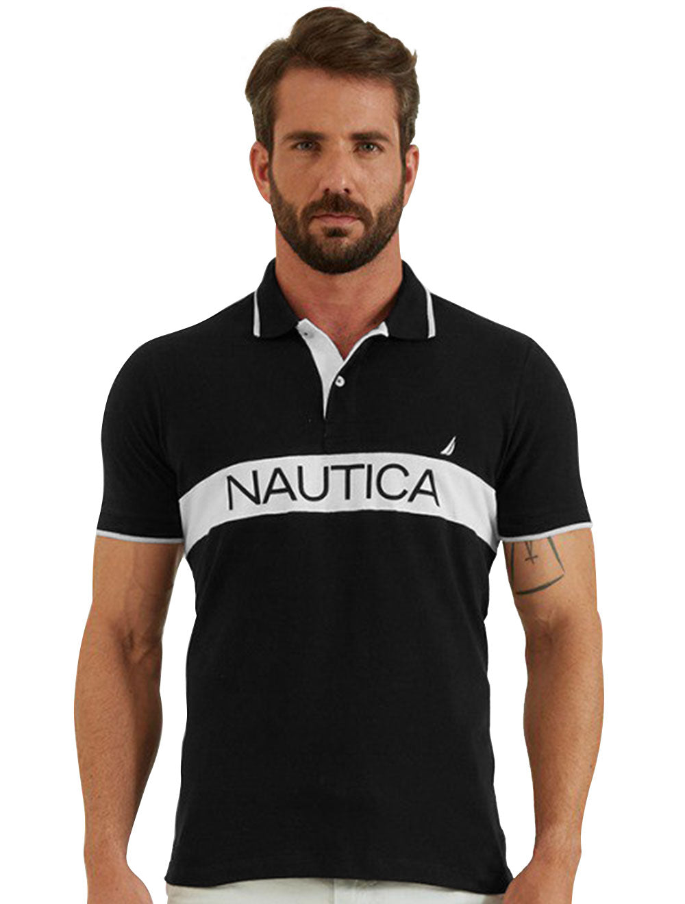 Polo em piquet masculina Nautica na cor preta.