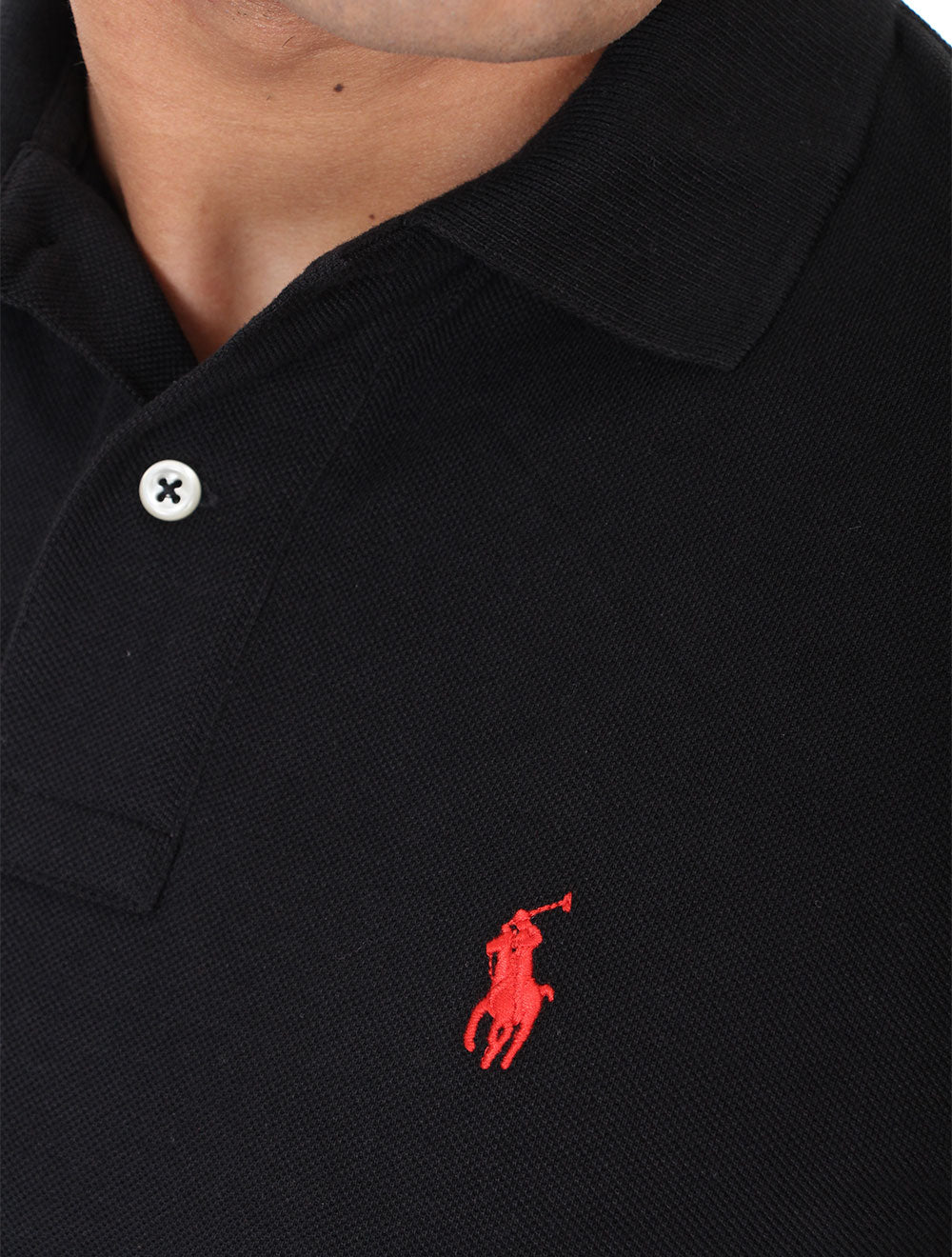 Parte posterior mais alongada, característica tradicional das polos da Ralph Lauren.