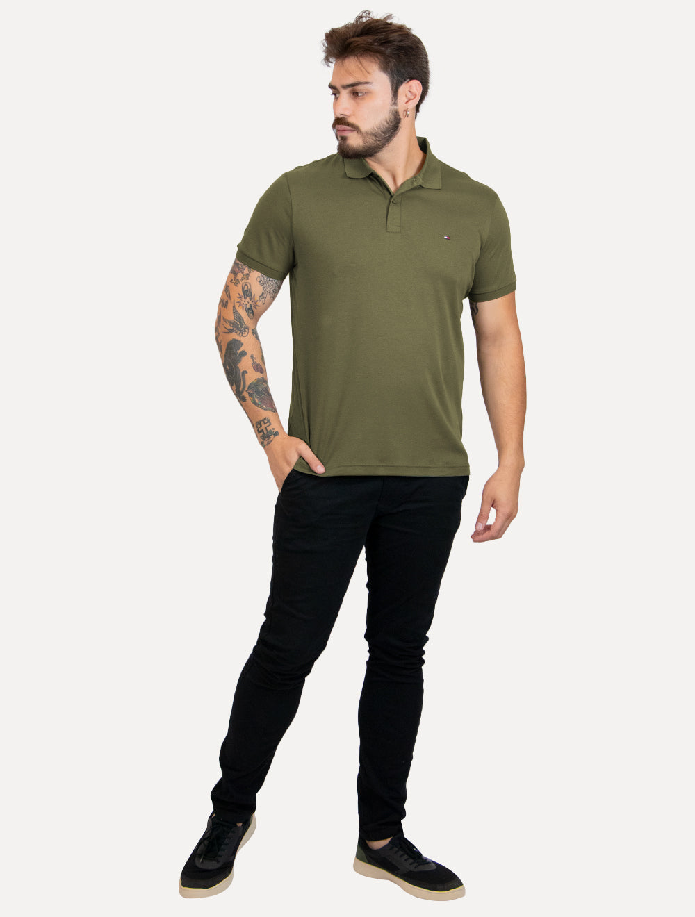 Polo em malha masculina Tommy Hilfiger na cor verde militar.
