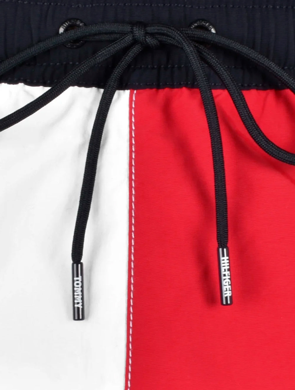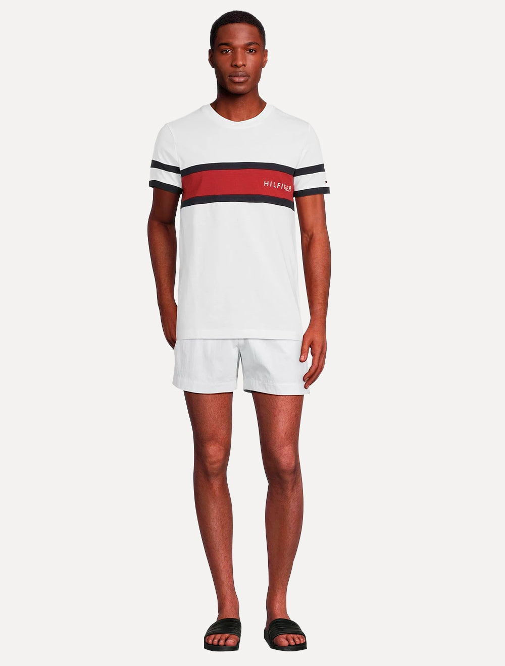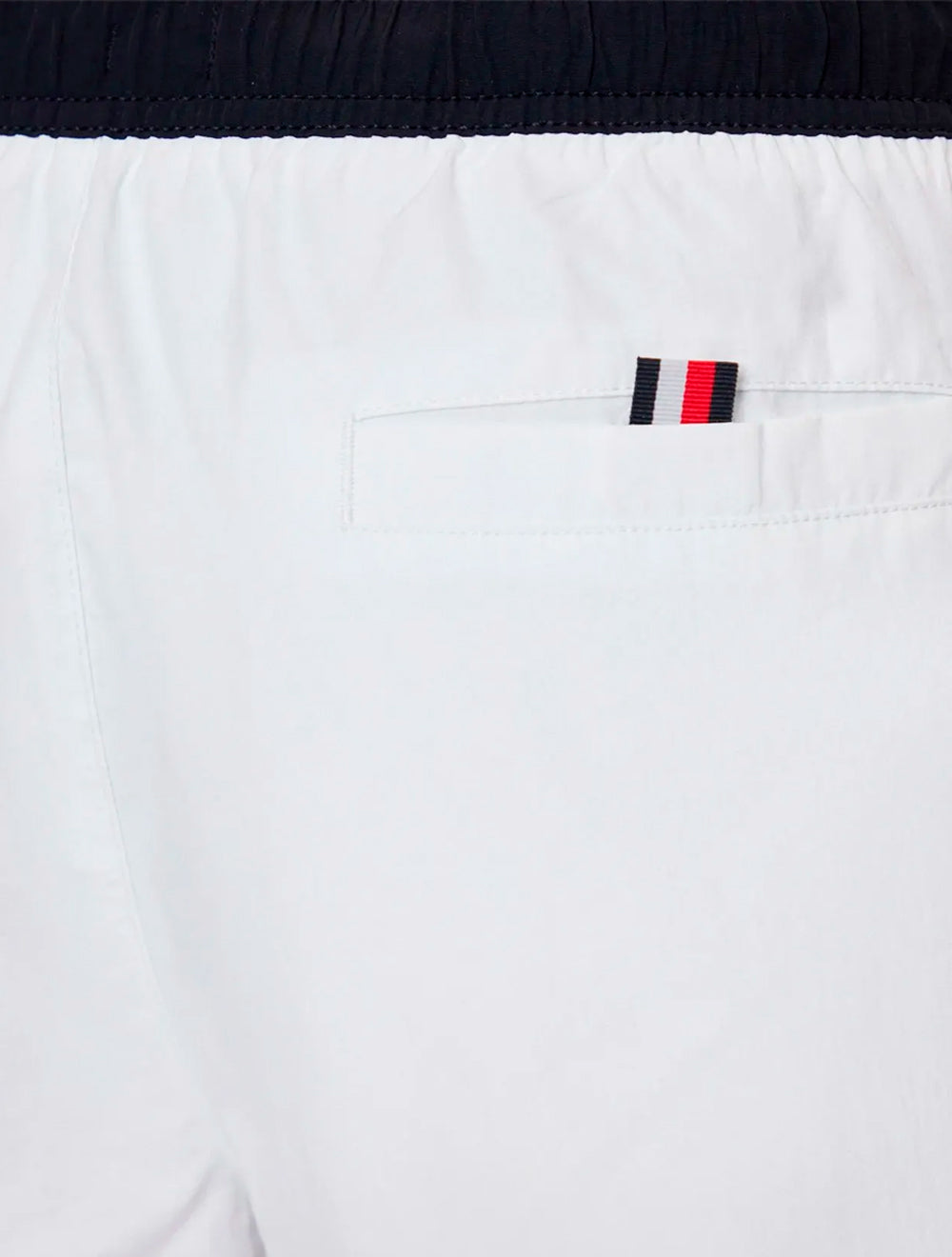 Etiqueta com as cores da marca aplicada na parte posterior no bolso.