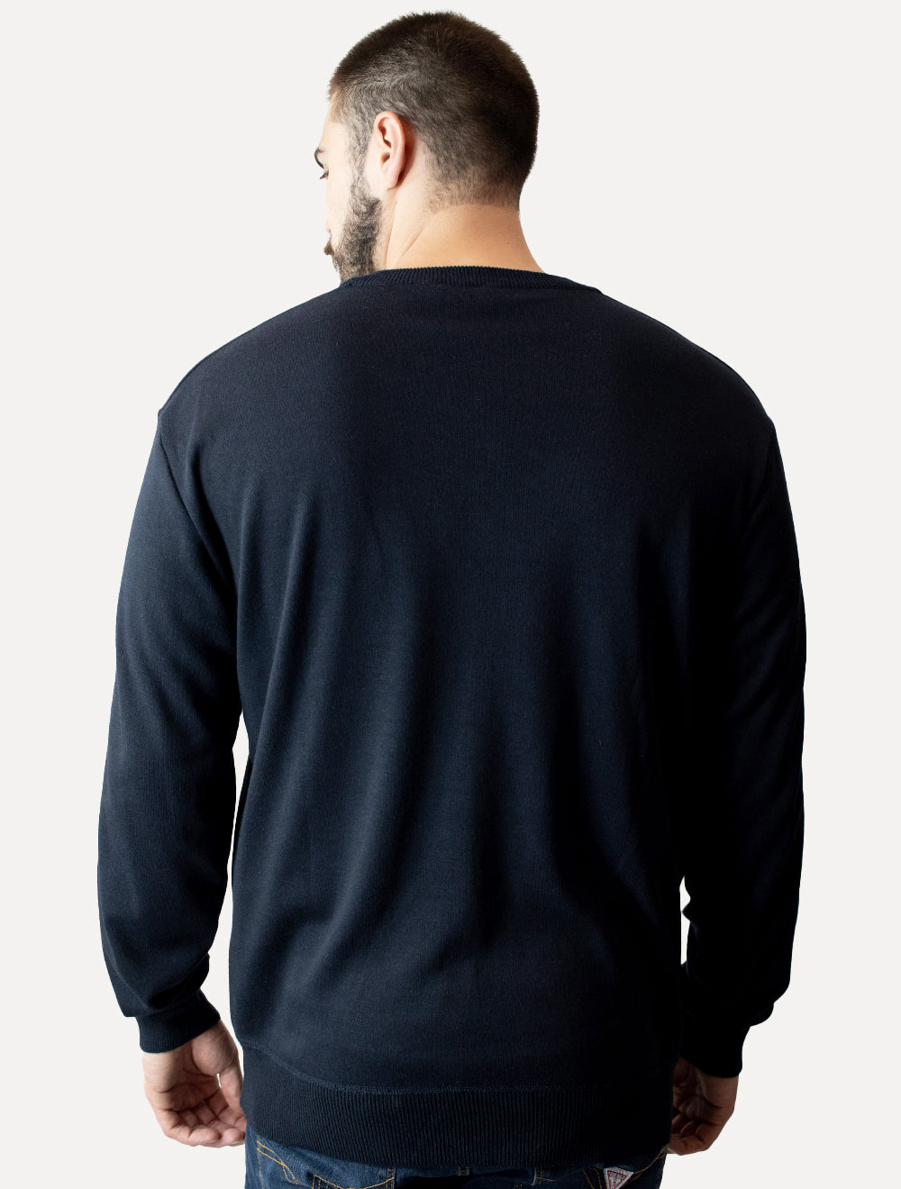 Abrace o conforto sofisticado com este suéter masculino em tricot.