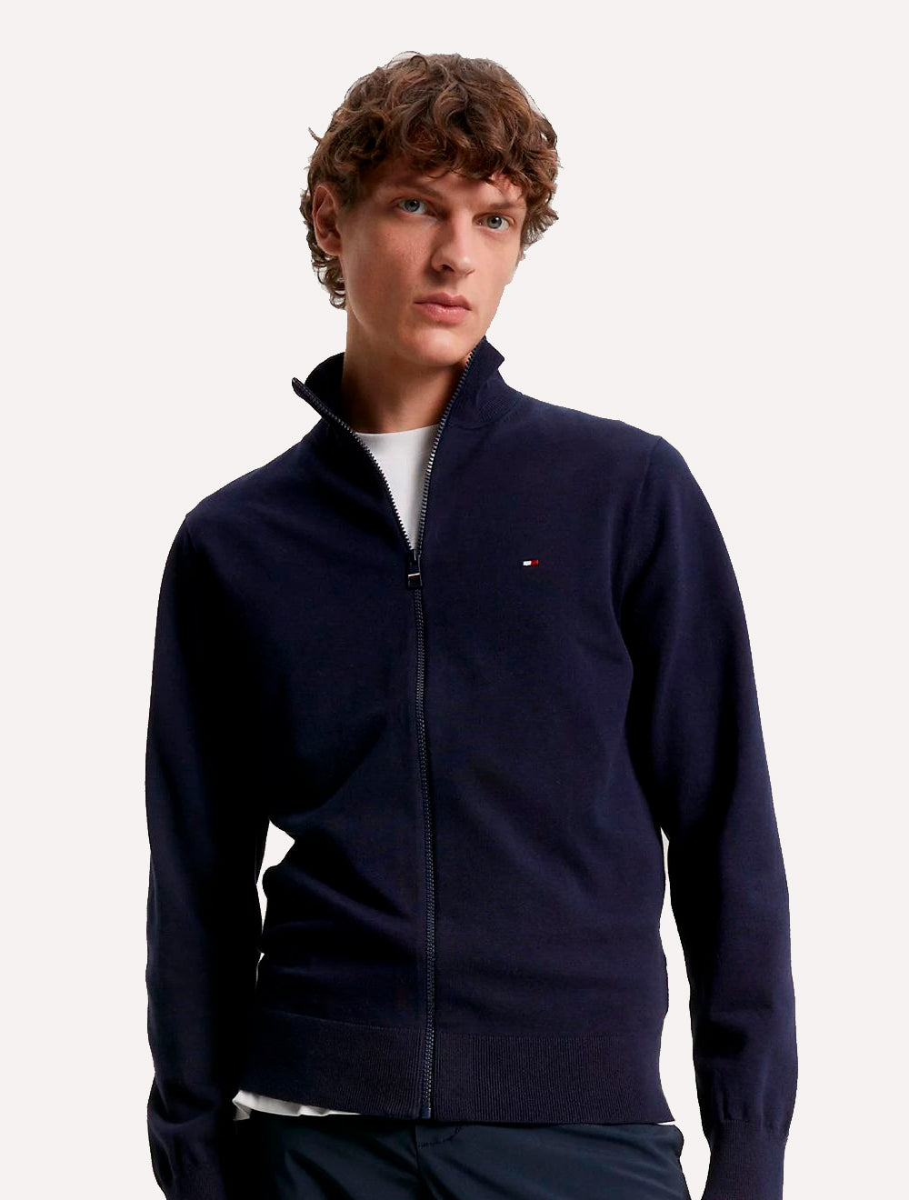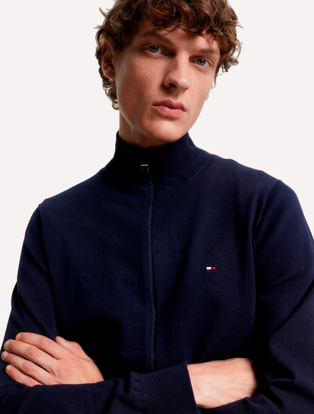 Bandeira Tommy Hilfiger bordada no peito.