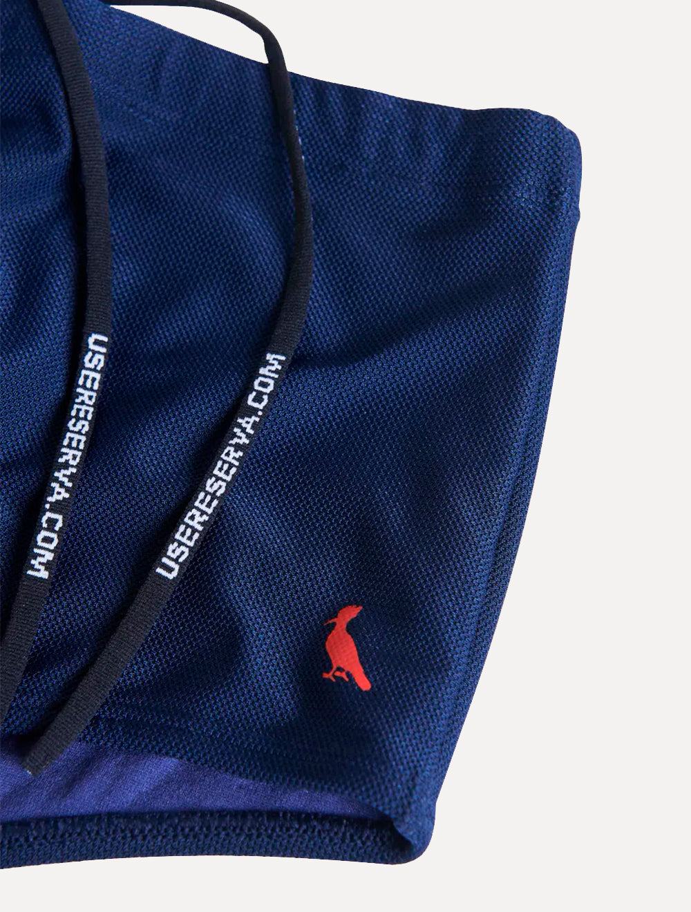 Possui modelo superfit, elástico no cós e ajuste interno por cordão personalizado Reserva.