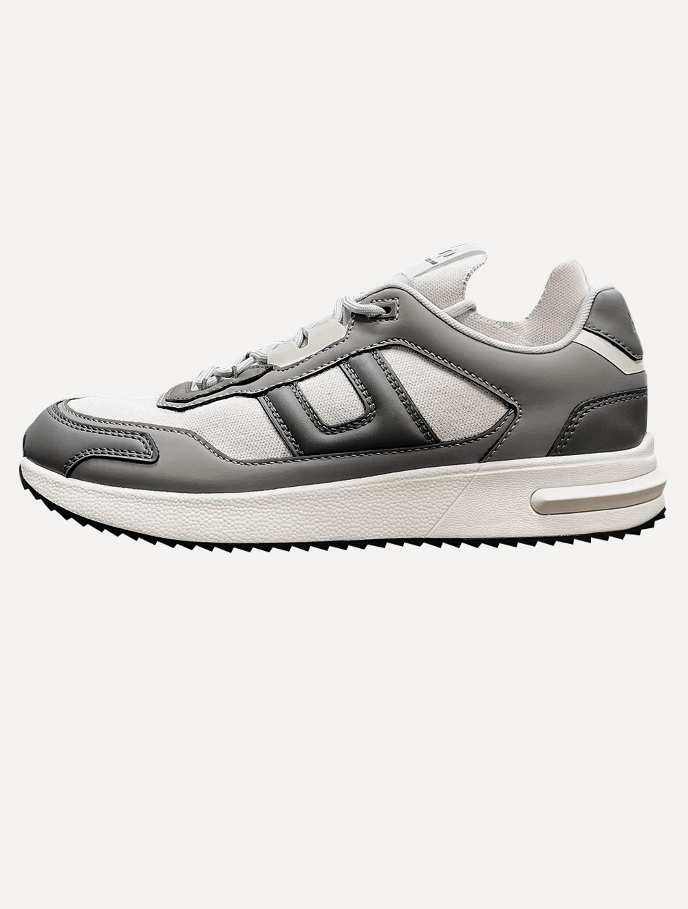 Cabedal em material têxtil com sobreposições sintéticas para maior durabilidade.