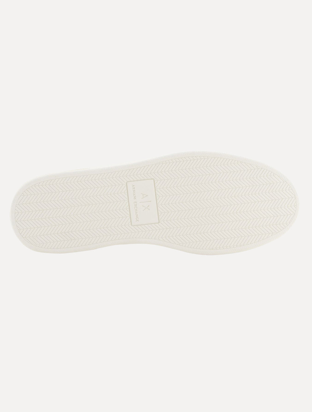Cabedal em material sintético com acabamento aveludado e logo Armani Exchange discreto na lateral externa e na entressola.