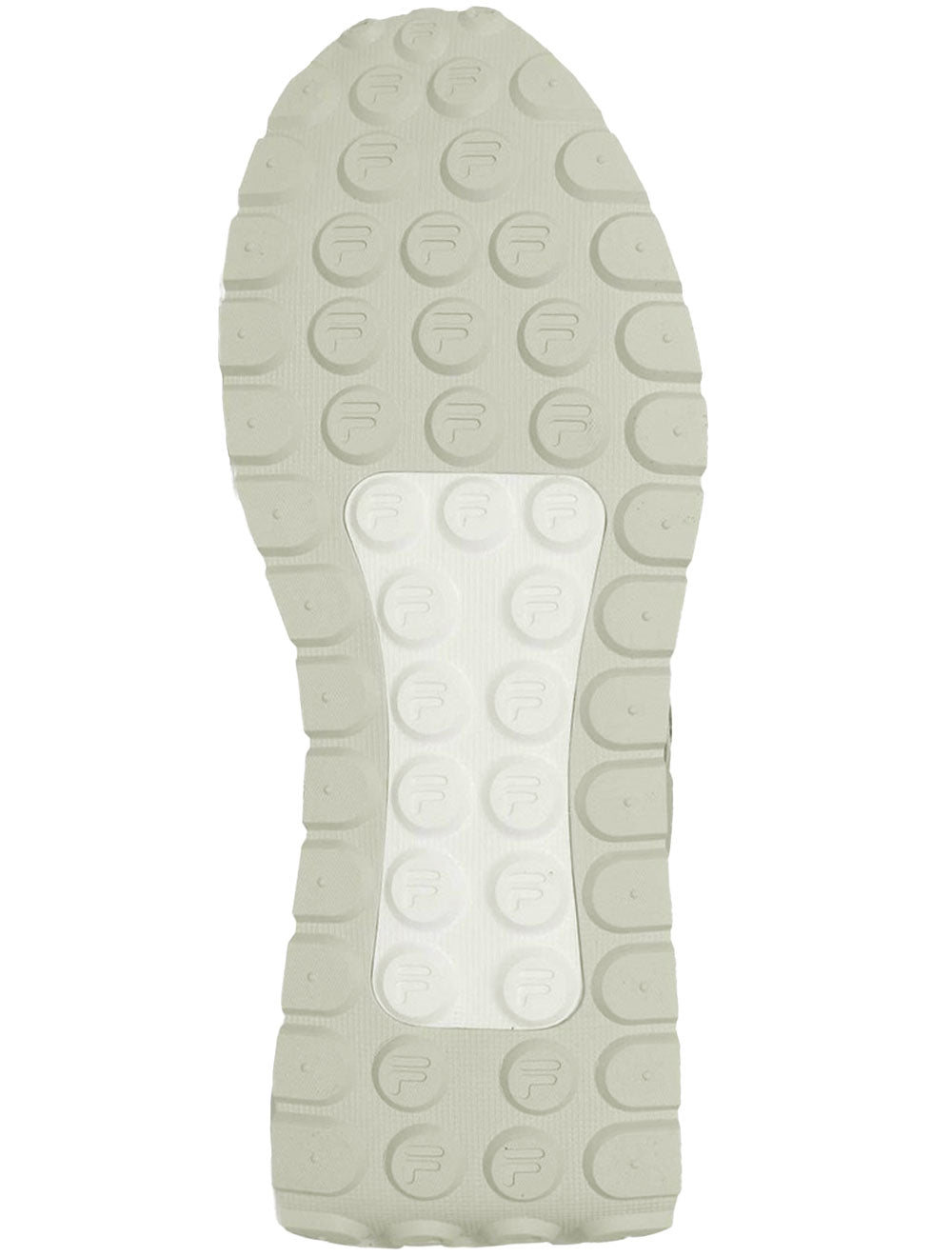 Na sola texturizada, com o símbolo da marca "F" aplicada como detalhe por toda sola.